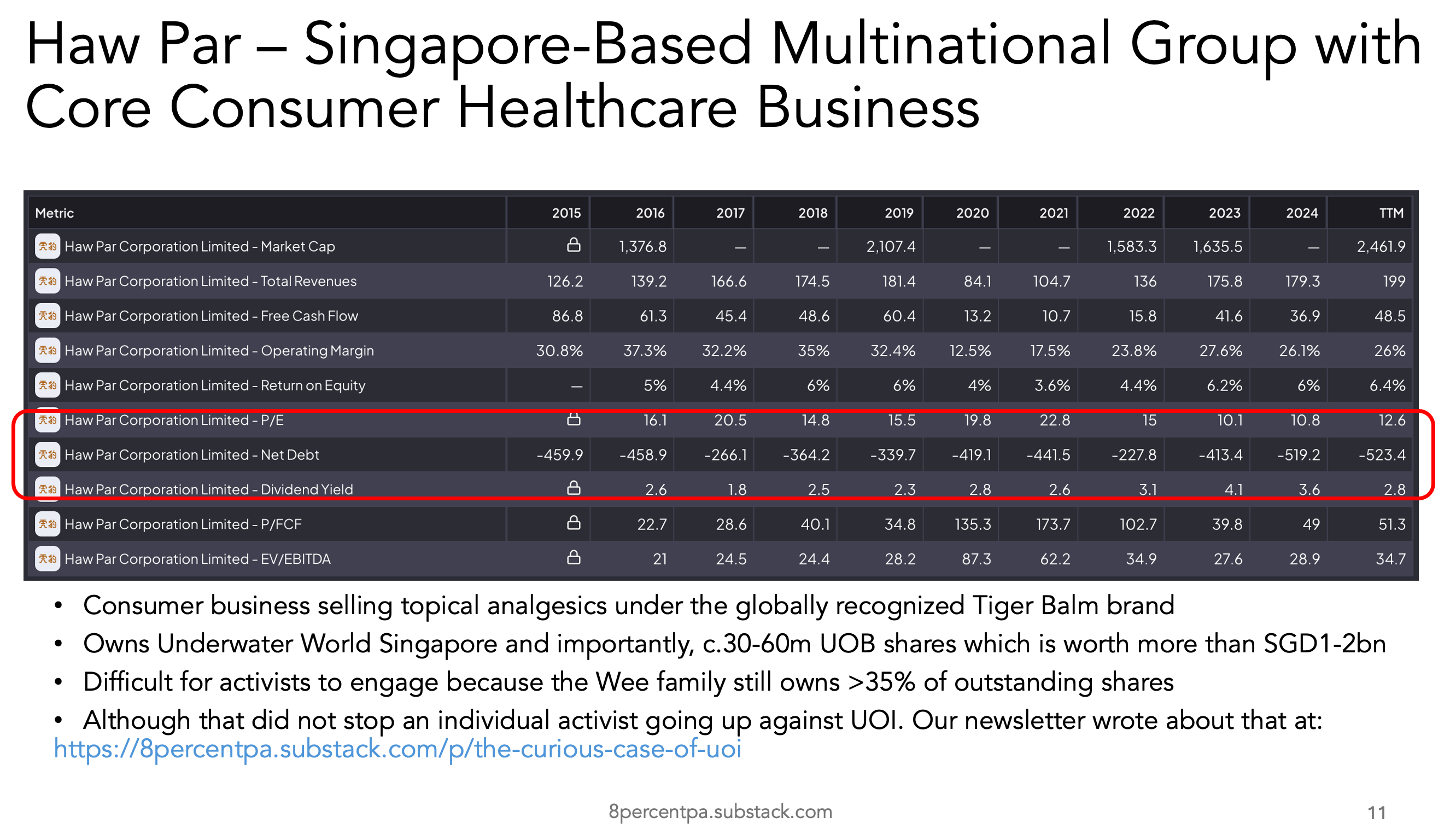 Haw Par has always been cheap when we incorporate its holdings and investment assets.