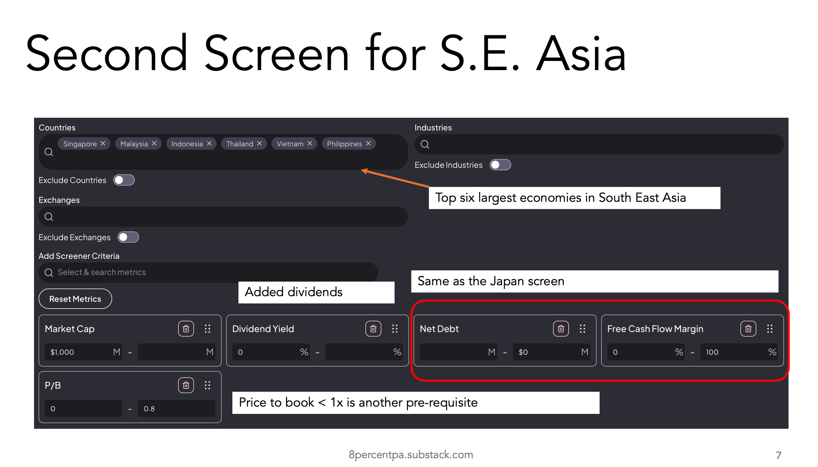 We used the same screen for Asia, or rather South East Asia but with an important tweak - we want dividends!