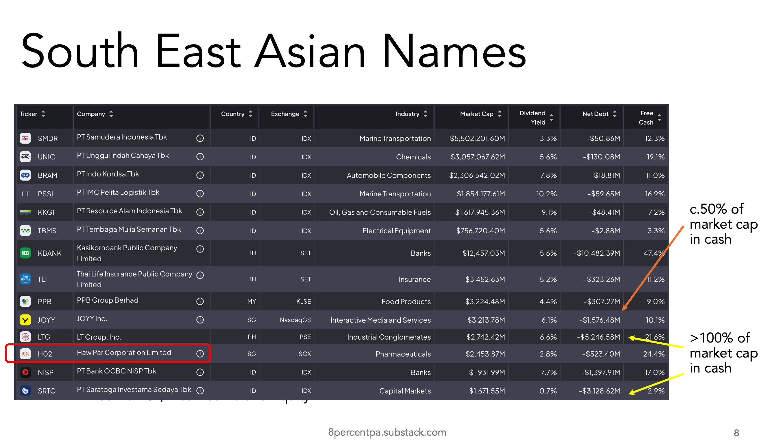 Because we wish to highlight JOYY and Haw Par, which are more interesting.